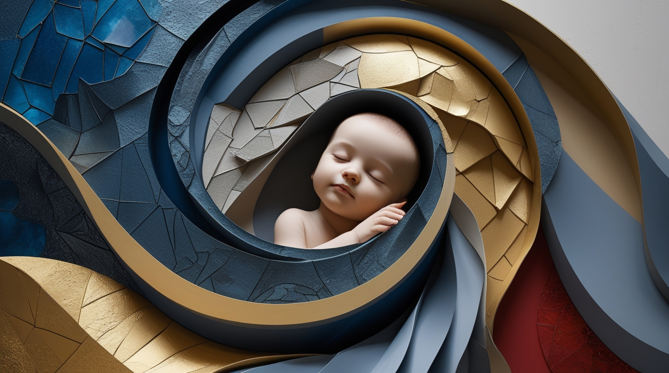 abstract figurative mother and child composition, architectural symbolism expressing motherhood and protection, modern digital oil painting with layered geometric texture, luxury abstract family artwork for collectors, iconic and culturally universal maternal art, museum-grade contemporary figurative painting, elegant lighting and sculptural depth, timeless motherhood fine art print